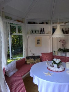 Diese Nische beim Gey Gartenpavillon ist ideal für einen Heizlüfter, dann steht dieser nicht einfach im Raum rum.